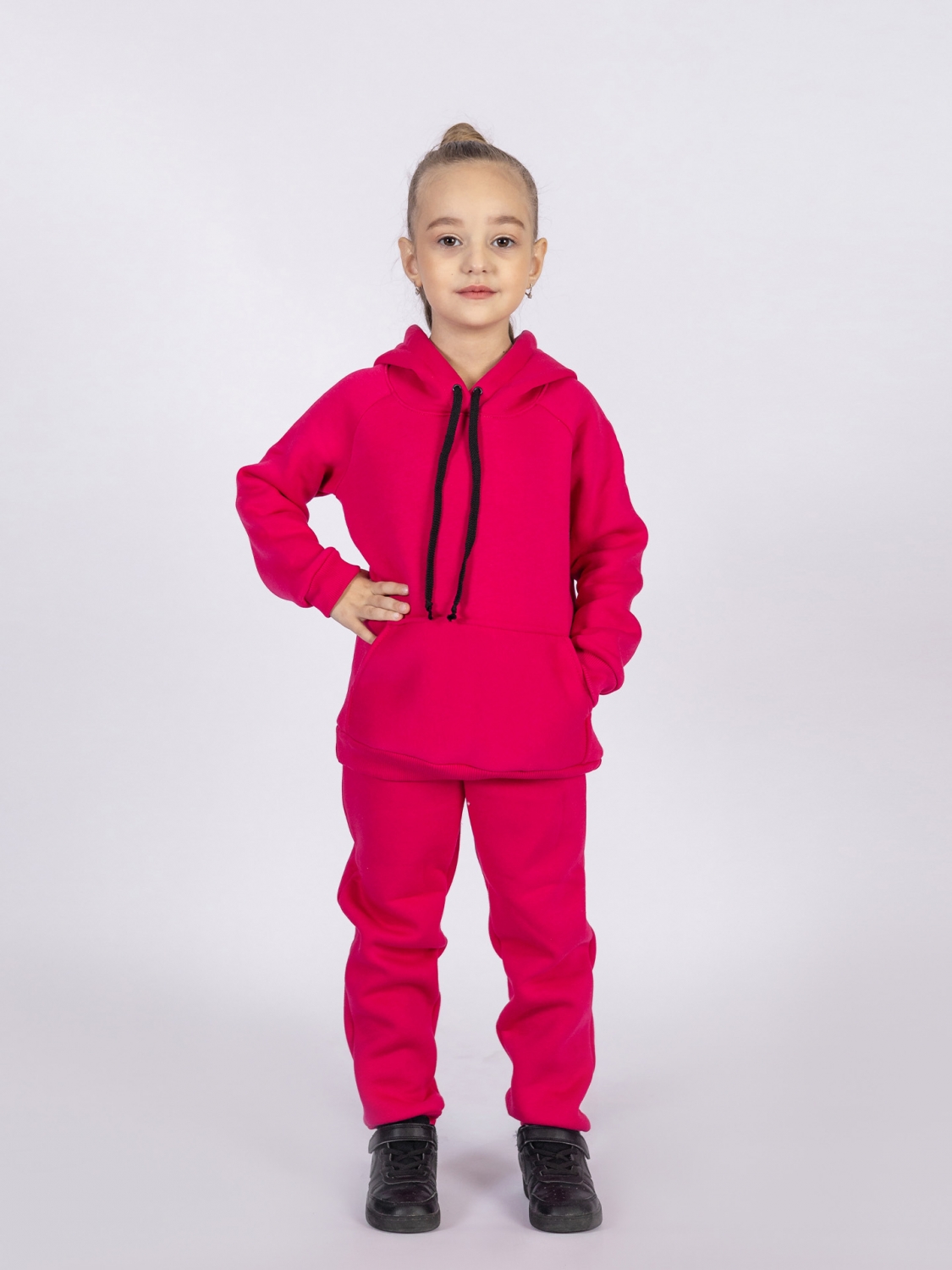 296-Ф. Свитшот с капюшоном + Штаны, хлопок 65%, 35% ПЭ, 3-х нитка (начес) фуксия 146,152,158